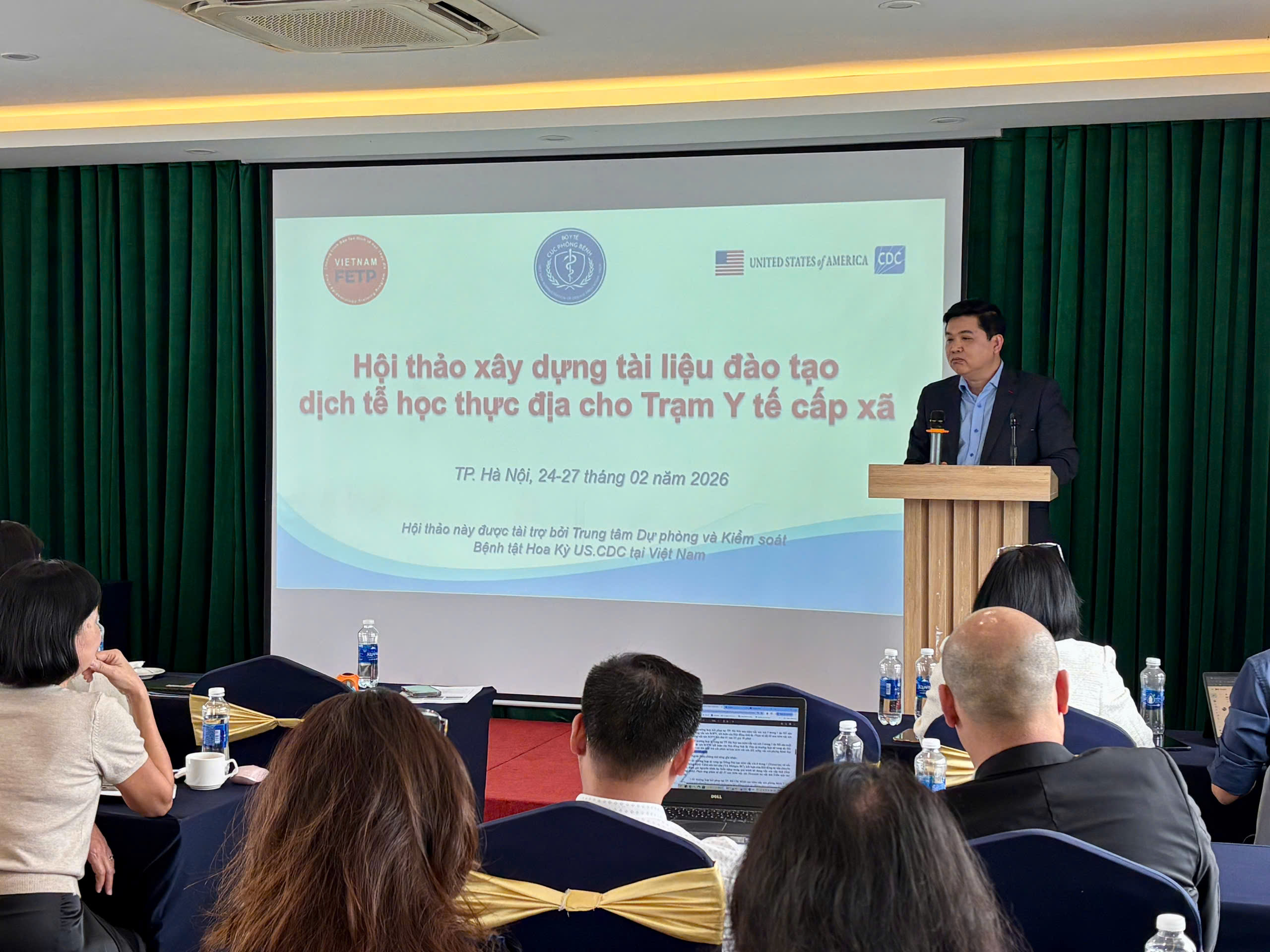 Để chuẩn bị cho việc triển khai đào tạo theo chỉ tiêu nói trên, đảm bảo Chương trình phù hợp với chức năng và nhiệm vụ, quyền hạn và cơ cấu tổ chức của Trạm Y tế cấp xã, Cục Phòng bệnh phối hợp với U.S. CDC tổ chức Hội thảo xây dựng tài liệu đào tạo dịch tễ học thực địa cho Trạm Y tế cấp xã từ ngày 24-27/2/2026 với sự tham gia của đại diện Cục Khoa học công nghệ và Đào tạo, các Viện Vệ sinh Dịch tễ/ Pasteur, Trung tâm Kiểm soát bệnh tật Thành phố Hà Nội, Hồ Chí Minh, Quảng Ninh và Trường đại học Y Hà Nội.