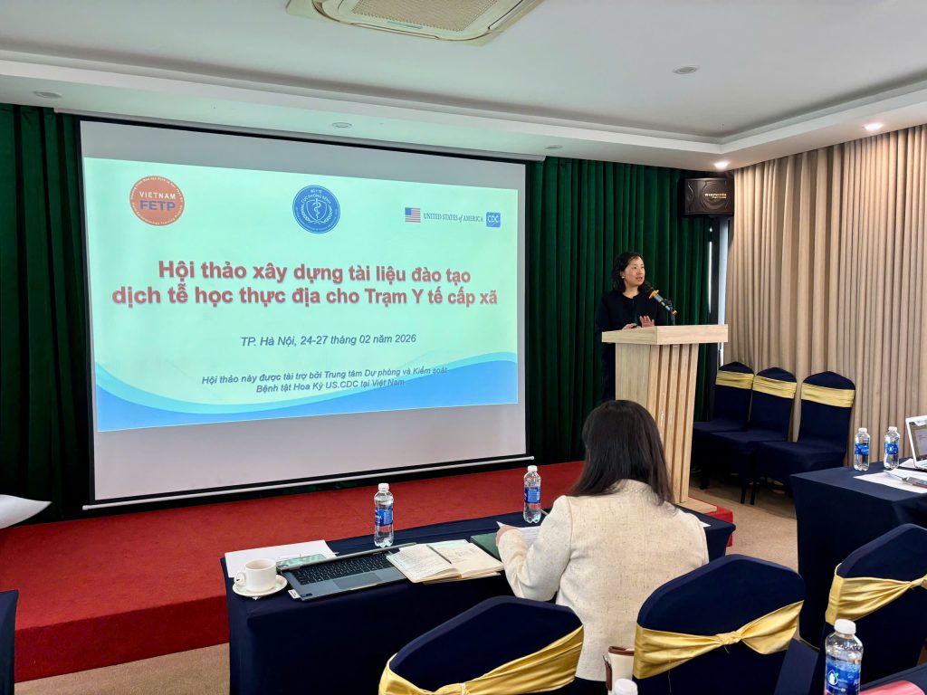 Để chuẩn bị cho việc triển khai đào tạo theo chỉ tiêu nói trên, đảm bảo Chương trình phù hợp với chức năng và nhiệm vụ, quyền hạn và cơ cấu tổ chức của Trạm Y tế cấp xã, Cục Phòng bệnh phối hợp với U.S. CDC tổ chức Hội thảo xây dựng tài liệu đào tạo dịch tễ học thực địa cho Trạm Y tế cấp xã từ ngày 24-27/2/2026 với sự tham gia của đại diện Cục Khoa học công nghệ và Đào tạo, các Viện Vệ sinh Dịch tễ/ Pasteur, Trung tâm Kiểm soát bệnh tật Thành phố Hà Nội, Hồ Chí Minh, Quảng Ninh và Trường đại học Y Hà Nội.